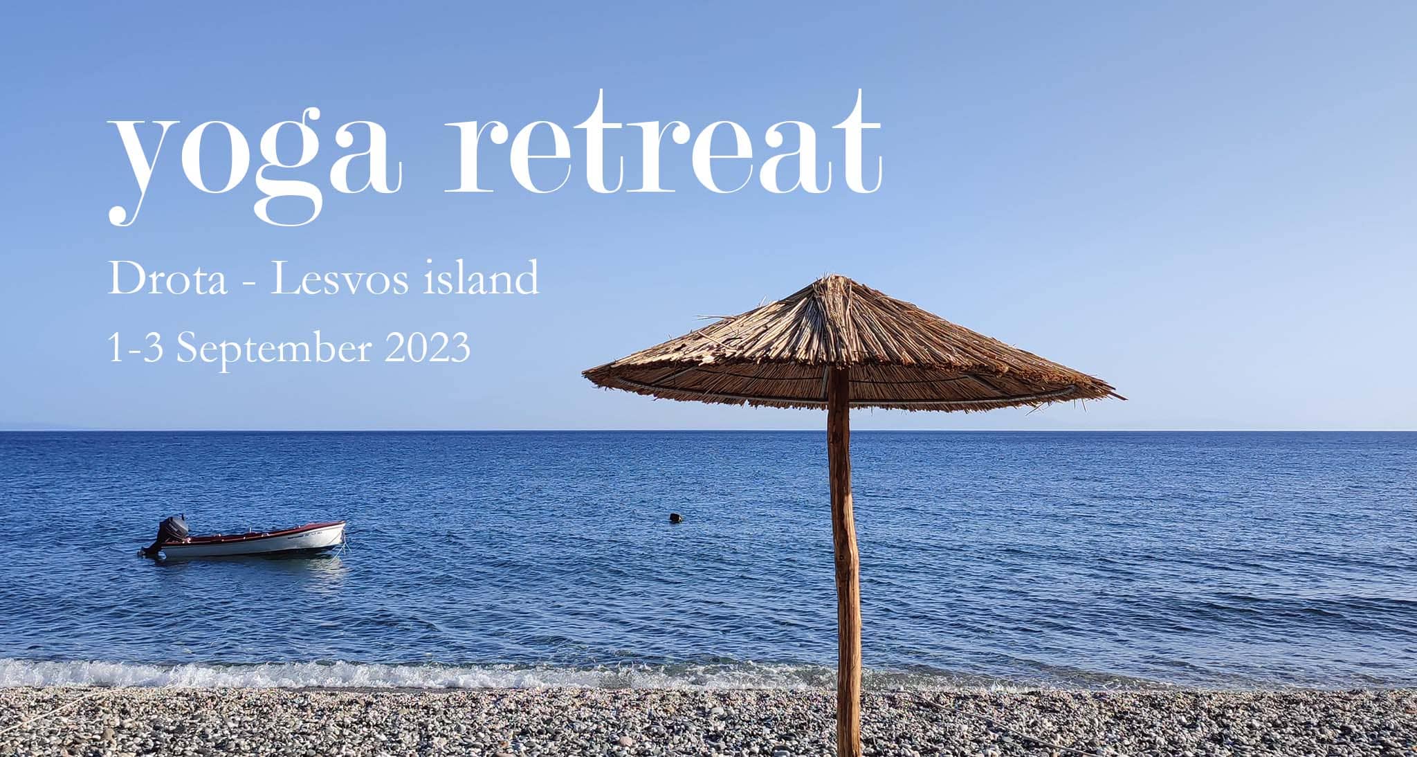 3-day Yoga retreat in Lesvos, Drota beach, from Saturday, June 7 to Monday, June 9 2025. Drota is a small settlement in the south of Lesvos where you will experience absolute tranquility, it is a quiet part of the island with beautiful nature. Here you will not find canteens with loud music and tourist shops with souvenirs. But you will have a long beach with clear waters right beneath your feet. So bring with you only the essentials, maybe also a book to enjoy in your free time, and join us on this excursion to deepen your Yoga practice.